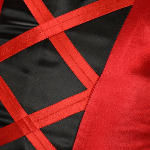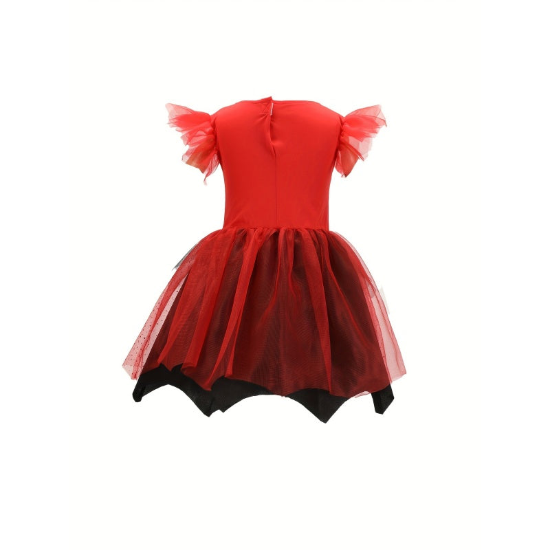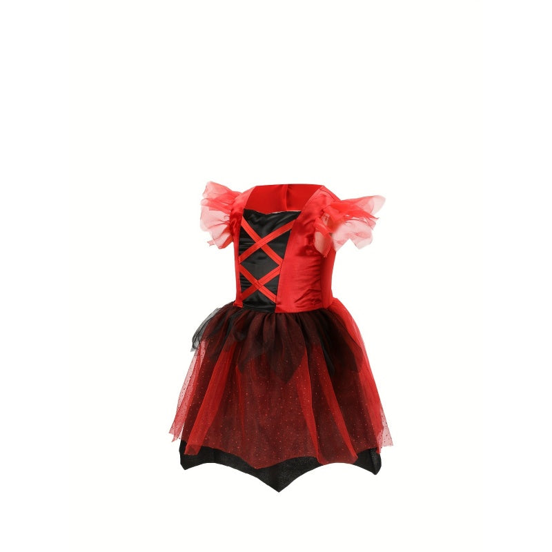 1pc Red & Gothic Party Dress with Horned Headband - Sleeveless V-Neck Asymmetrical Skirt, Non-Stretchy Fabric, Perfect for Halloween, Christmas, and Themed Events, Halloween, Christmas Outfit, Polka Dot Pattern, Accessory