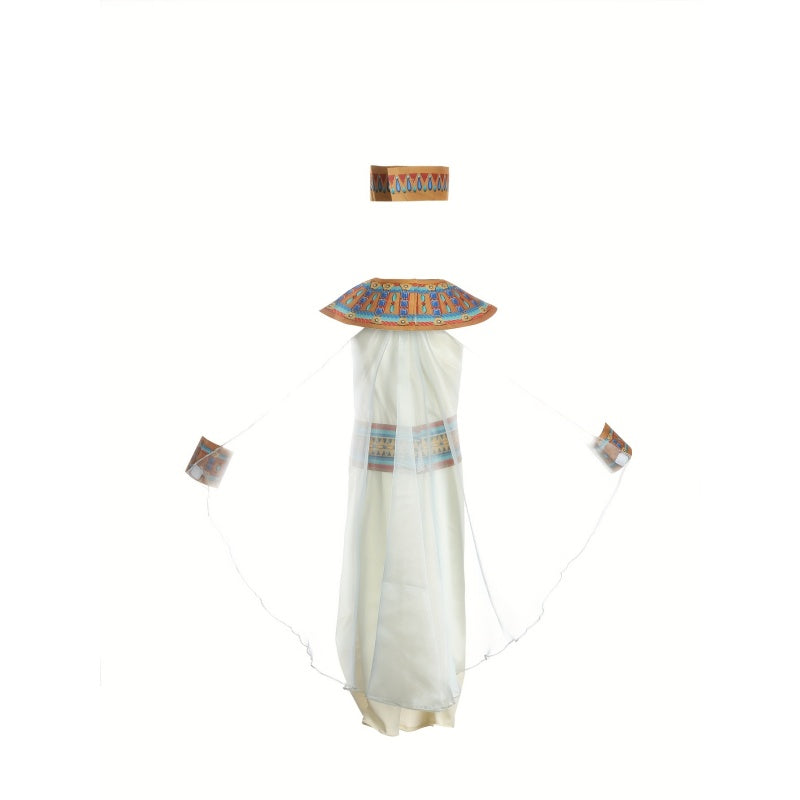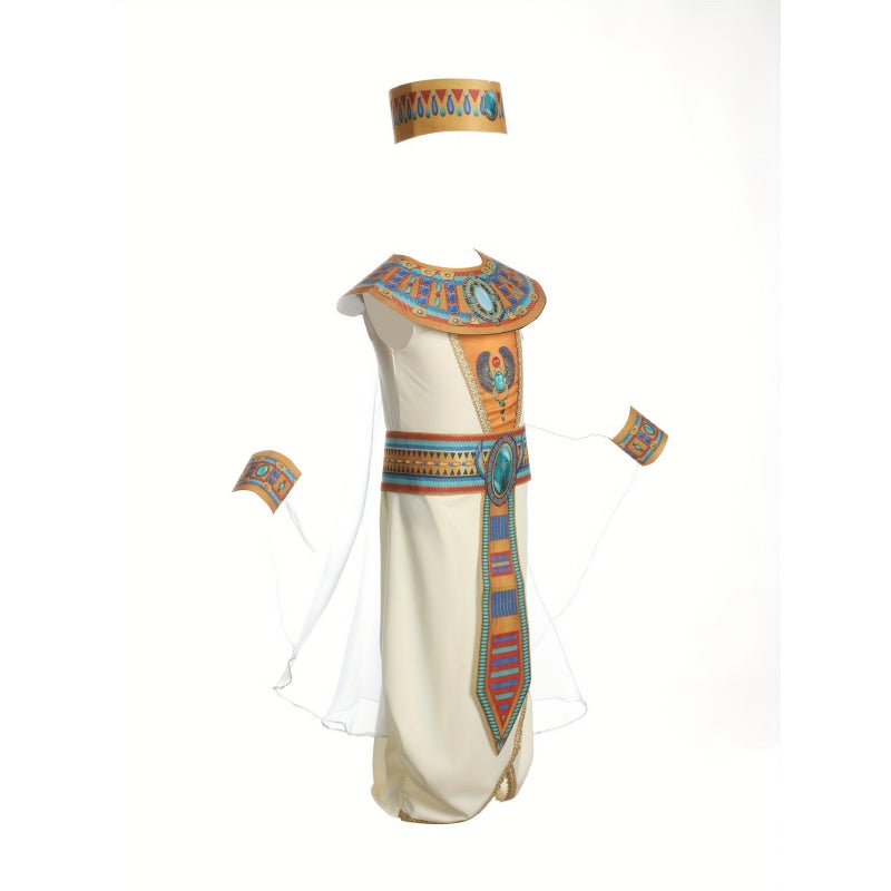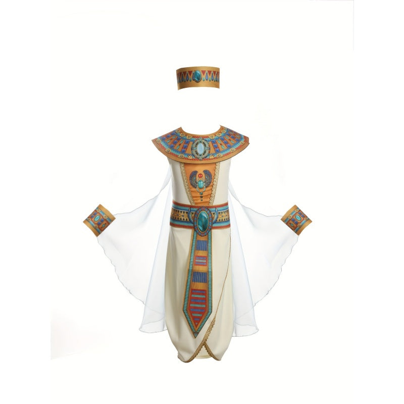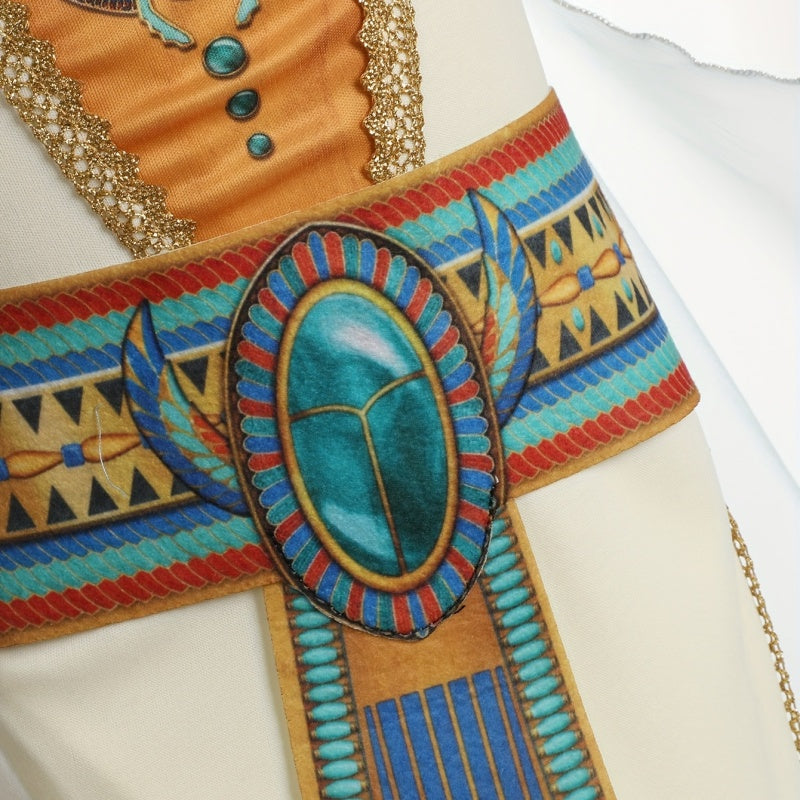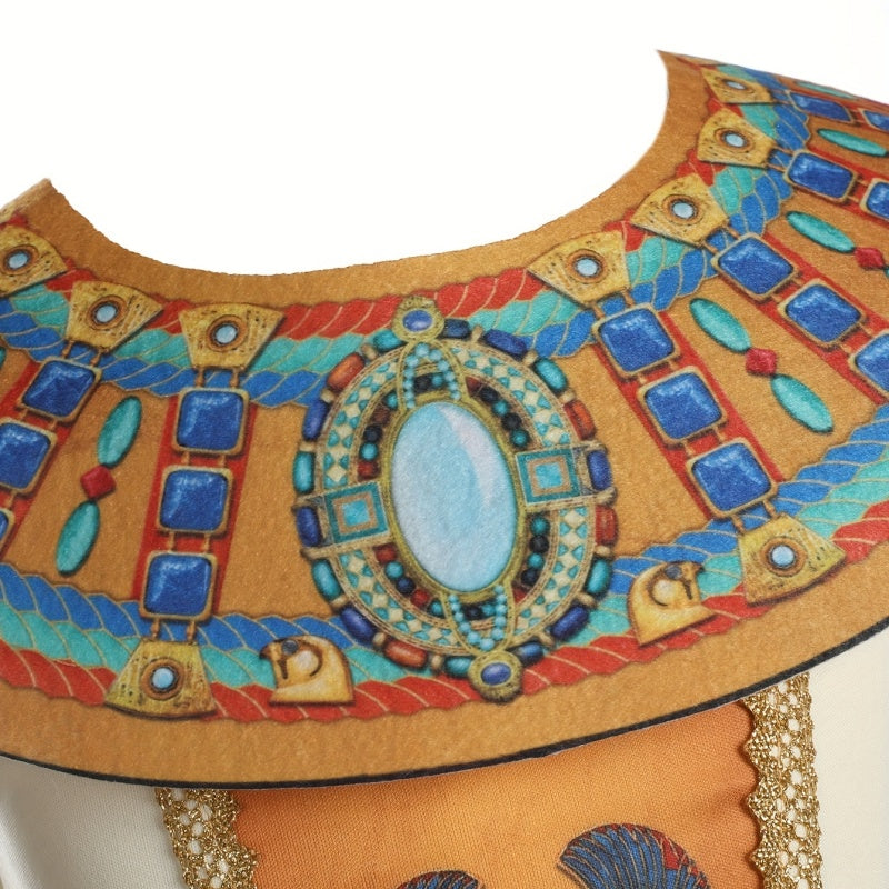Girl's 6pcs Set: 1 Straight-Leg Printed Dress + 1 Printed Choker + 1 Printed Belt + 1 Pair of Printed Wristbands + 1 Printed Headband, Ethnic Print Party Outfit for Girls, Egyptian Print Elements, Halloween and Carnival Costume for Girls, Holiday